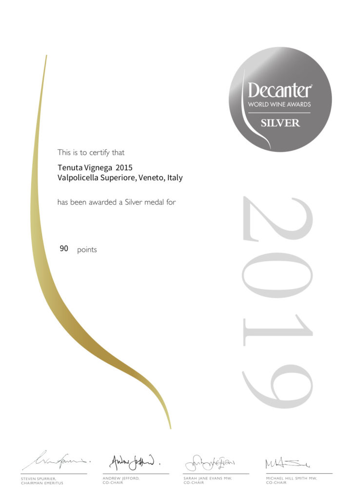 Valpolicella Superiore Vignega, medaglia d’argento Decanter World wine Award 2019